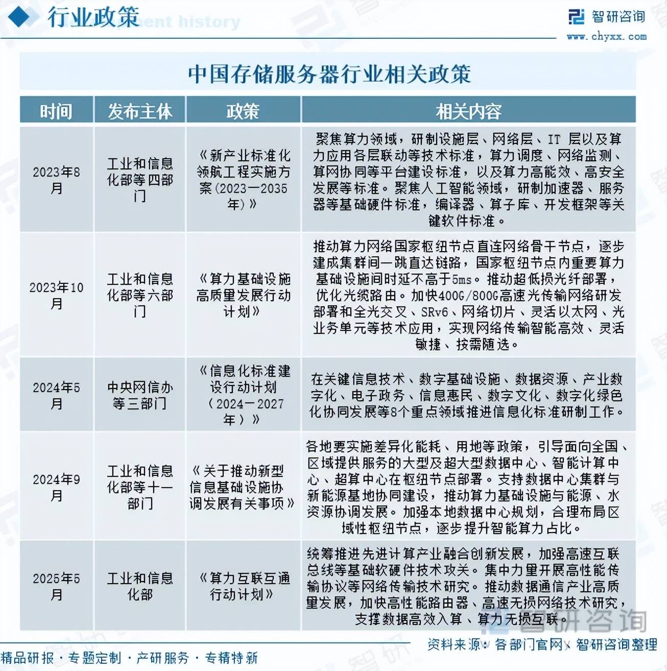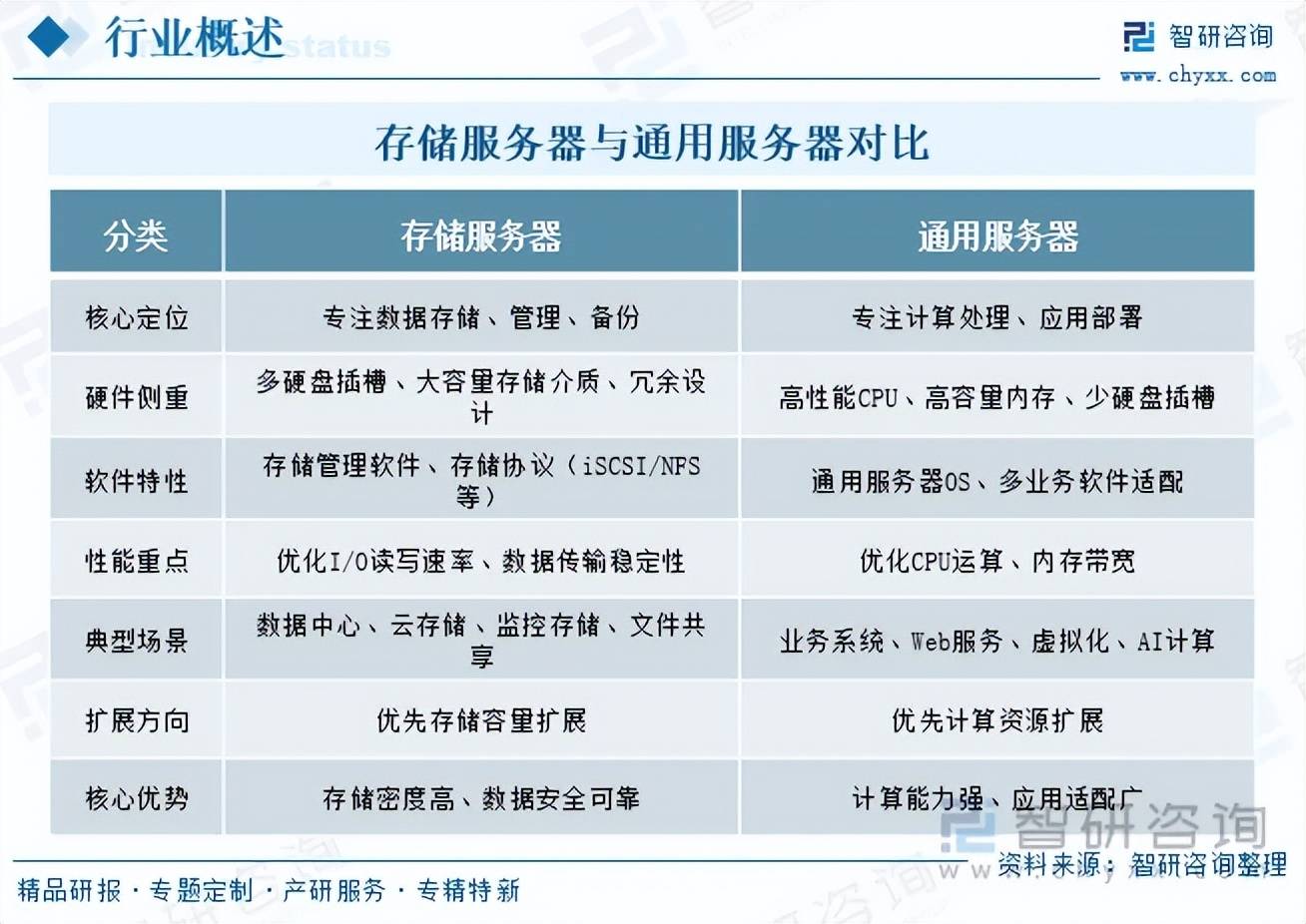 注:本文节选出自智研征询发布的《研判2025!中国存储办事器行业政策、财产链全景、成长示状、企业结构及将来成长趋向阐发:算力基建提速扩容,存储办事器赛道前景广漠[图]》行业阐发文章,如需获取行业文章全数内容,可进入智研征询搜刮查看。